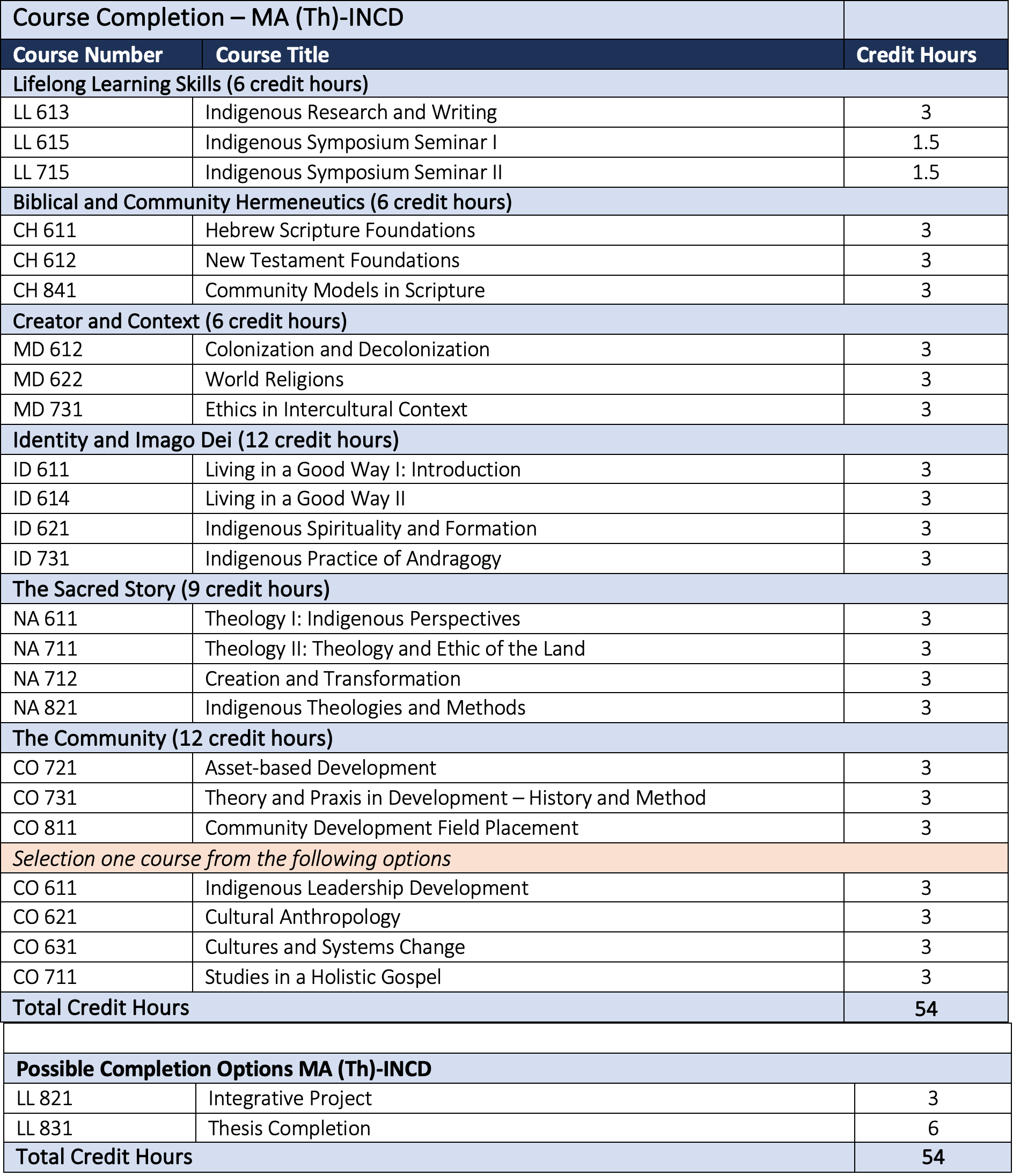 54 Credit Hours earns you a Master of Arts in Indigenous Community Development